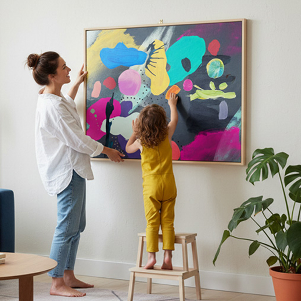 For just $50, commission our professional graphic artists to create three bespoke digital proofs from your child's messy play. Our designers work closely with you to ensure each interpretation complements your home's unique aesthetic—transforming spontaneous creativity into sophisticated compositions that seamlessly blend childhood wonder with refined elegance.